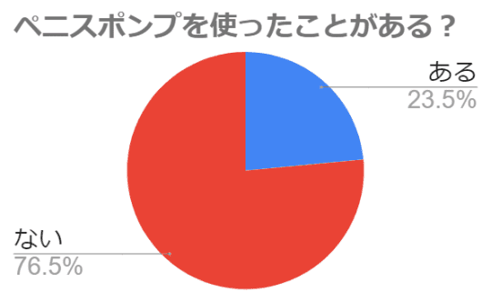 アンケート調査の結果、ほとんどの男性がペニスポンプを使ったことがないという結果になりました!自身のちんこの大きさに悩んではいるものの、実際に行動に移していない人が多いようですね。