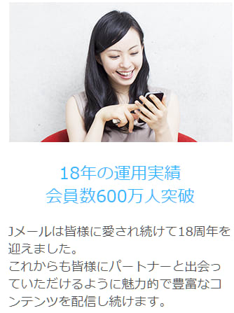 Jメールは会員数600万人以上で、運営歴が20年以上とかなり長い出会い系アプリです。