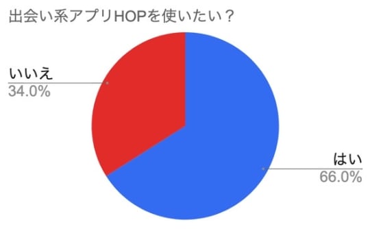 出会い系アプリ「HOP」を使用したいか?ということを聞いたところ、使用したいという人が6割を超えました。