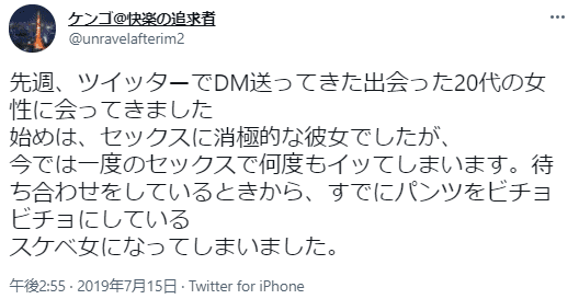 女の子の方もヤリモクですが、余裕のない気持ち悪い下ネタやセックス自慢をする人とは会おうとしません!