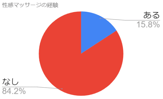 上記は独自の調査で100名の女性を性感マッサージの体験があるか調べてみました。約16%程度の女性は経験があると回答しています。一般のマッサージだと思い予約をしたら実は性感マッサージ店だった…ということもあるようです。