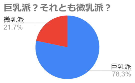 アンケートの結果は、巨乳派8割で微乳派が2割!僕だけじゃなく大多数の男性が巨乳に魅了されていることがわかります。