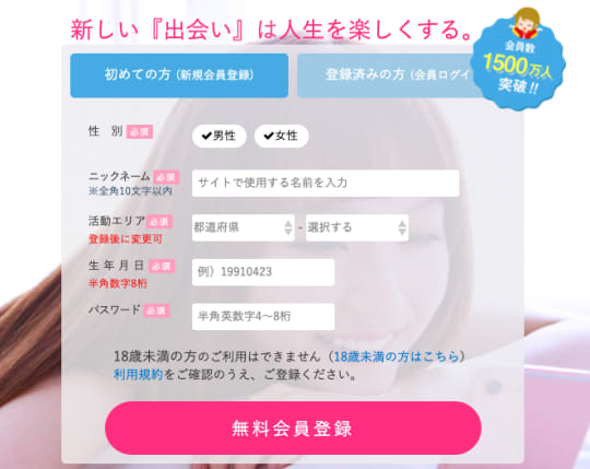 登録者数も1500万人とかなり多いから、エッチなことだけがしたい目的で出会いたいならこうした出会い系アプリを使う方がずっと効率がいいです!私もエッチがしたいだけなら断然コッチ!