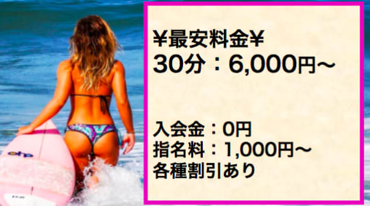 マンツー30分(指名料 ¥2,000)¥6,000~で、ダブル回転30分(指名料1人につき ¥1,000)¥6,000円です。