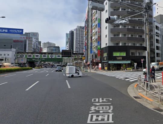 改札を出たら歩道橋を渡り、ソニー通りを目指します。