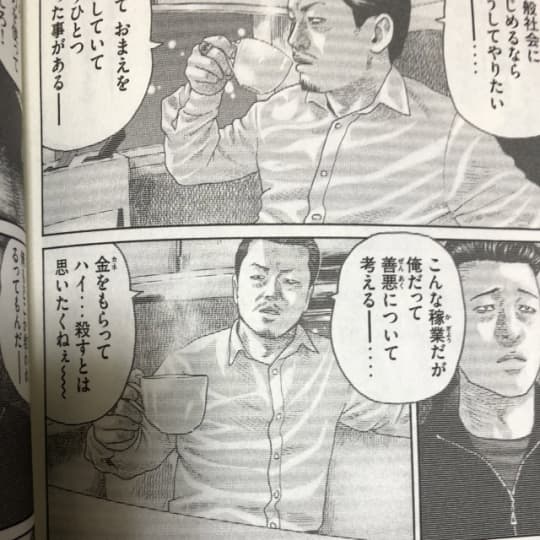 ですが、主人公のファブルがそもそも殺し屋であり、その庇護元が暴力団ということから、なんとなく危ない雰囲気絵はあるわけです。