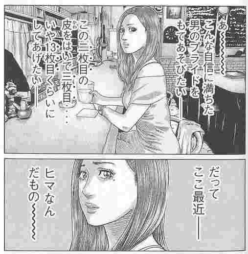 休業期間中は、いろいろな男を酒場に誘い、男を酔いつぶさせてはそれをみて楽しんでいいます。