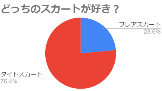 調査結果をまとめた上のグラフから、タイトスカート好きが多いことが分かります。ふんわりとした女性らしいフレアスカートももちろんイイけど、やっぱりエロさで比べたらタイトスカートの右に出る者はいませんよね!