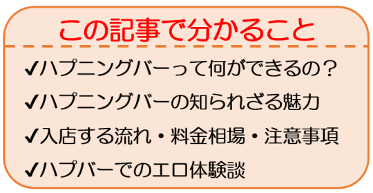 ディープなエロスポットとして知られるハプニングバー。謎のベールに包まれたハプニングバーではありますが、そこにはどんなエロが待っているのかが気になるところ。実はハプニングバーは他の風俗と比べてよっぽど本番成功率が高く、僕もハプバー常連になってしまいました!
