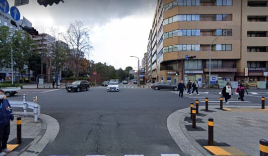 大きな通りに出ると十字路があります。その十字路を左に曲がります。