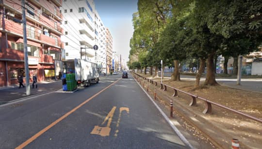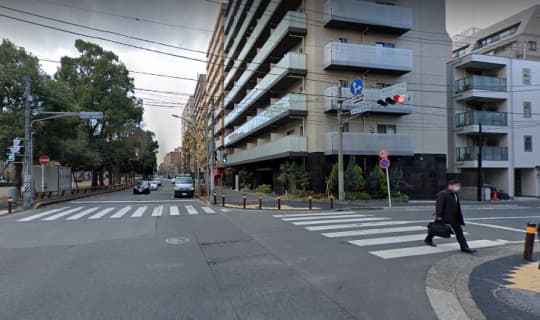 直進すると大きな通りに出ます。その十字路をさらに直進します。