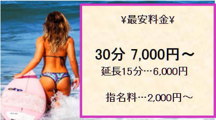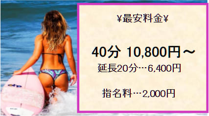 料金 | 40分10,800円~ | 40分8,800円~ | 30分7,000円~ | 35分9,000円~ | 35分8,000円~ | 35分9,000円~ |