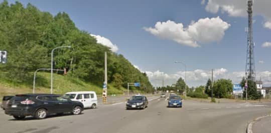はま寿司が右側にあるよ。まだもう少しまっすぐ進もうね。