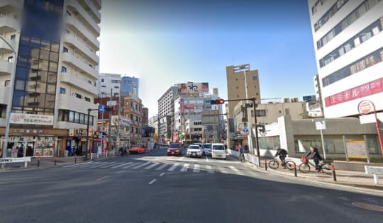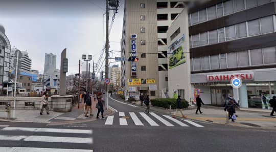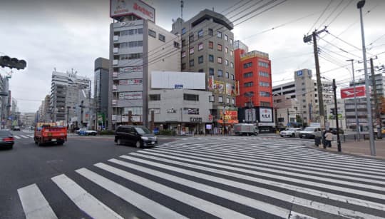 駅を出ると大きな交差点があります。その交差点を右に曲がります。