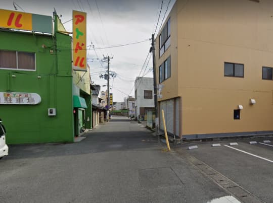 路地を1分ほど直進すると、ソープ街に到着します。