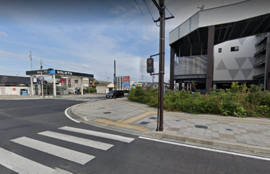 まずはイオンモールとガソリンスタンドの間の道に入ります。