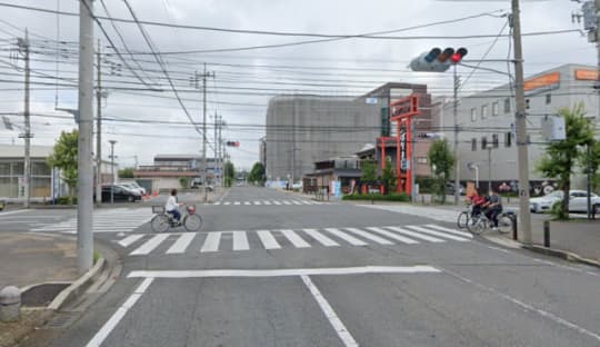 そこから徒歩5分程度歩き、ラーメン屋・文房具屋・スーパーなどがある大きな十字路を右折。
