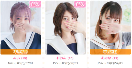 20代前半がメインで、清楚系からギャル系、スレンダーの女性もいれば、巨乳のぽっちゃりさんもいるので、選ぶのも楽しいですよ。