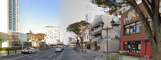 まずは、JR別府駅から南西に進み、北浜通りを目指します。