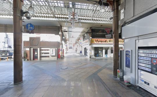 右手の茶色い建物1階が、目的地「宝塚」です。