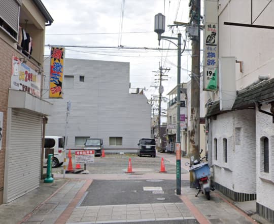 こちらを画像左の路地に入って十字路2つ目まで真っすぐ進んでください(1つ目は変形十字路)。