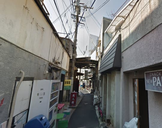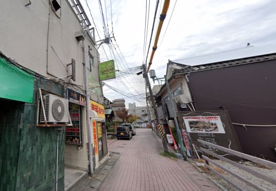 こちらを画像左の路地に入って、十字路2つ目を越えて進んでください(1つ目は変形十字路)。