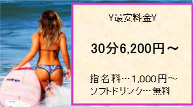 料金 | 50分18,000円~ | 30分6,000円~ | 30分6,200円~ | 20分3,000円~ | オールタイム4,000円 | 30分6,200円~ |