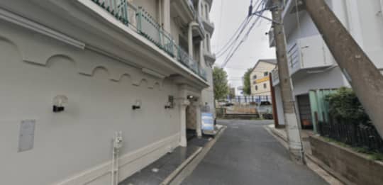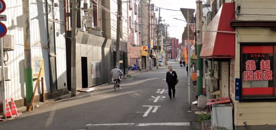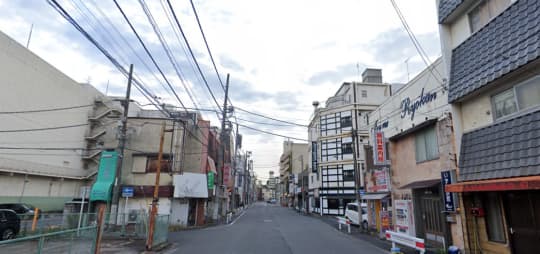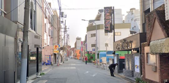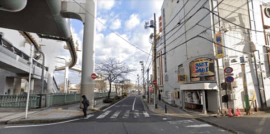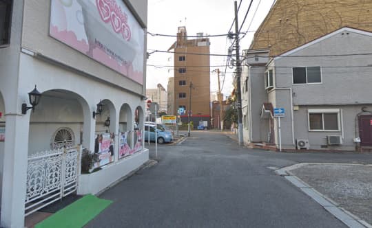 左向こう側のHAMA(以前の店舗)が、目的地「若い娘女学園」です。