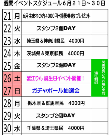 さらに日替わりのイベントがあり、お得なプランが盛りだくさんだ!