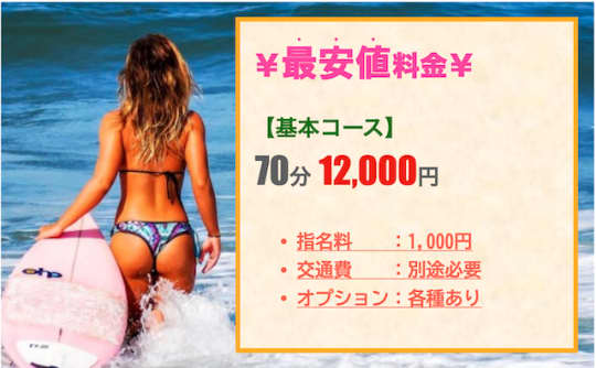 人妻の匂いを利用する場合の最安値料金は、「基本コース70分」12,000円。基本料金以外に必要になるのは、指名料1,000円・オプション・交通費など。