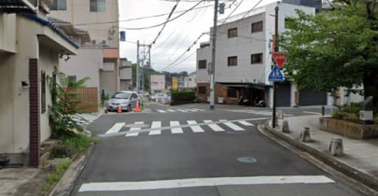 舞鶴城公園奥の十字路を右に曲がりましょう!