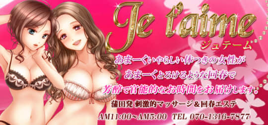 「Je t'aime~ジュテーム~」のプレイ時間は、60分〜360分の設定。主なコースは、シングルセラピスト・ロングコース・ダブルセラピスト.。