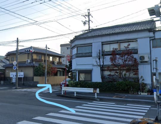 曲がってからは1つ目の横断歩道まで進んでいきましょう。