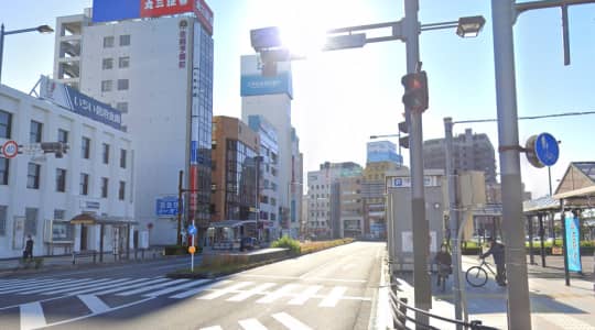 駅を降りたら駅真向かいに「いちい信用金庫」があるので、横断歩道を渡って「いちい信用金庫」方面へ向かいましょう。