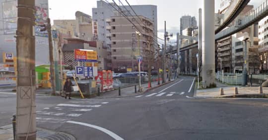 栄町駅をでるとすぐ交差点があるのでそこを左に曲がって進みましょう。