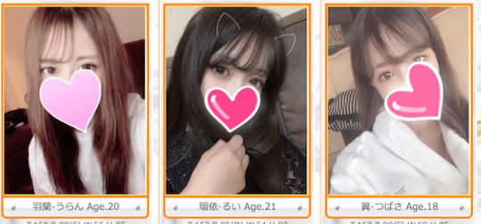 「Rufe(ルーフ)」の女の子は、色っぽいセクシー系が多いよ。年齢は、18歳〜20代で若いね。