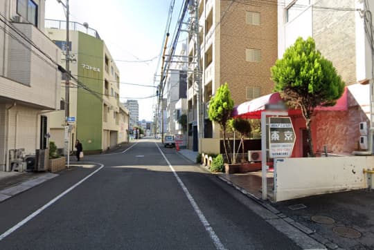 こちら右側の建物が、目的地「ヘルス東京」です。