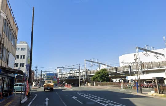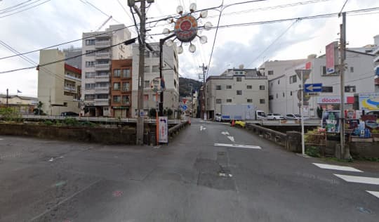 もう既に画像左側にビルが見えていますが、川を渡ってすぐの路地を左に曲がってください。