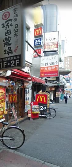 北へ向かうとマックとコンビニが見える。その間を進む。