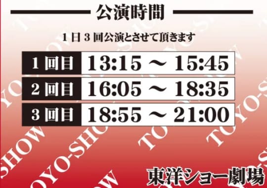 正式な時間帯は4公演の方。今は上図のようなコロナ禍の特別時間帯を組んだりするので、注意が必要だ。