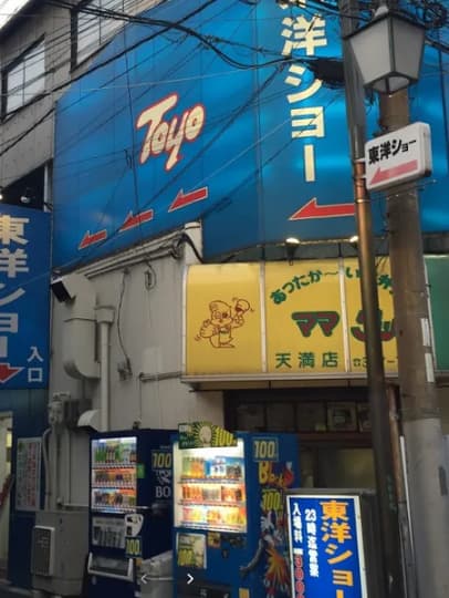 関東煮屋を右折し80メートルほど進むと青いテントが見えて来る。そこが東洋ショー劇場。