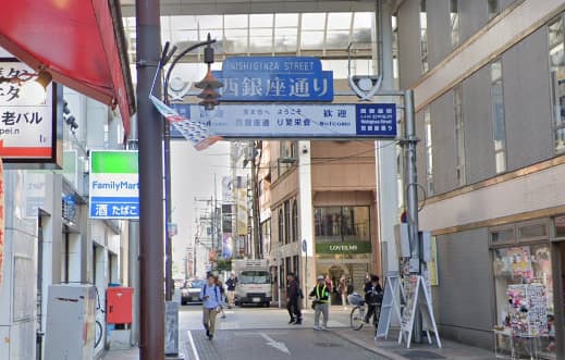 銀座西通りを進んできて、左にファミリーマートがありますが、その交差点を右に曲がって進んでください。