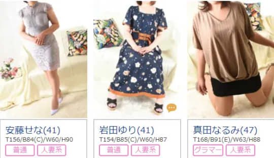 20代の若い子はいませんが、30代40代の色気たっぷりの熟女がいるのが特徴ですね。
