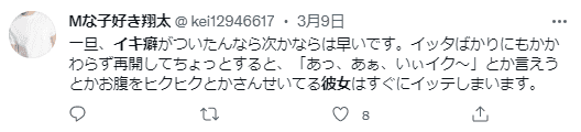 あと男性の中には、”早漏”の方もいるかと思います。早漏が悪いとは決して思いませんが、イキ癖を身に着けさせるときは弱点になることもあります。
