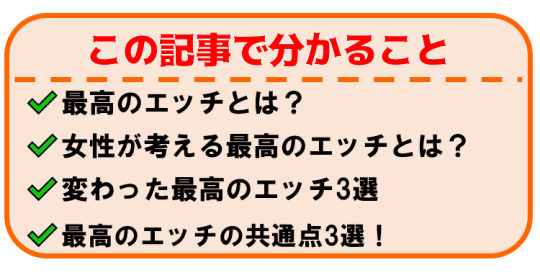 そしてその共通点から最高のエッチとは何なのか?徹底的に考えてみたので是非皆さんもこの記事を読んで最高のエッチを目指しましょう。