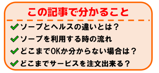 「ソープに興味があるけどサービスの内容がよく分からない。」「行ってみたいけど、よく分からないから行きにくい。」