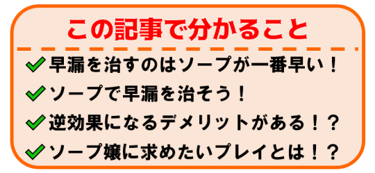 せっかく勇気を出してソープには入れても早漏を治せないと本末転倒ですよね?
