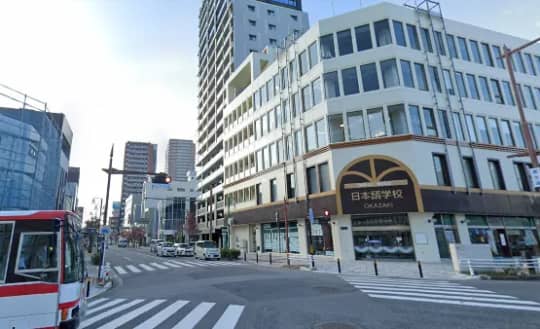 日本語学校を目印に直進し、十字路を左に曲がります。