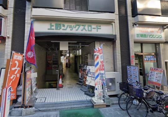 小虎を正面に見て右にある上野シックスロードの階段を降りると受付があるよ。