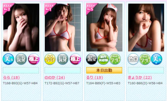 現役女子大生・現役OL・現役デパガなどの、昼間会社に勤めながら働いている美少女・美女が人気を呼んでいます。